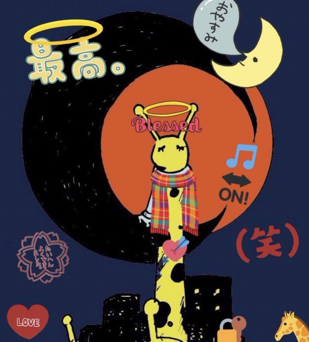 夜だ... (これやっぱbot機能使いたいな ( ̄▽ ̄;)) #ユズ檸檬の絵 #イラスト王国 #単色画 #キリン #イラスト好きな人と繋がりたい #おやすみ #잘