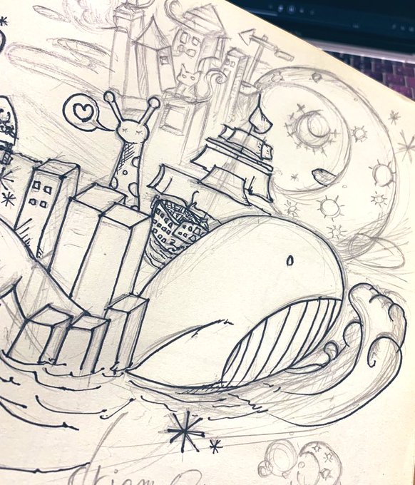 構図は考えるものじゃなくて、思いつくものだよなって、見返して改めて思った。 #絵かける #単色画 #ユズ檸檬の絵