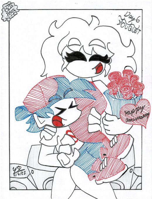 Inktober 2022 Day 6: Bouquet I realized that it's the 2nd Anniversary of FNF Yesterday so uhh, here's the Wholesome Couple that took over Newgrounds :> Anyways, Happy 2nd Anniversary, FNF :D #inktober #inktober2022 #inktober2022day6 #fridaynightfunkin #Anniversary
