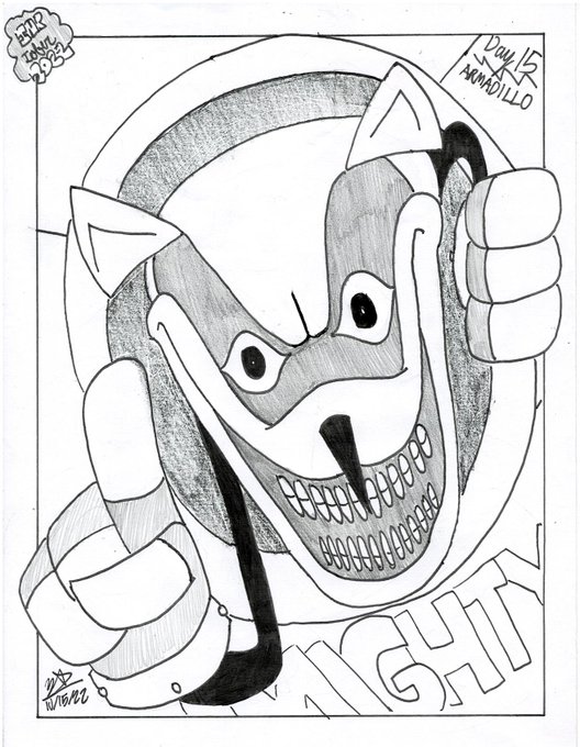 Inktober 2022 Day 15: Armadillo "In the Notepad, fates are written 'cus Pandora didn't listen. Time will march, and here with me, THIS SCREEN'S THE LAST YOU'LL EVER SEE." - Mighty.ZIP by @DastardlyDeacon #inktober #inktober2022 #inktober2022day15 #sonicexe #mightyzip