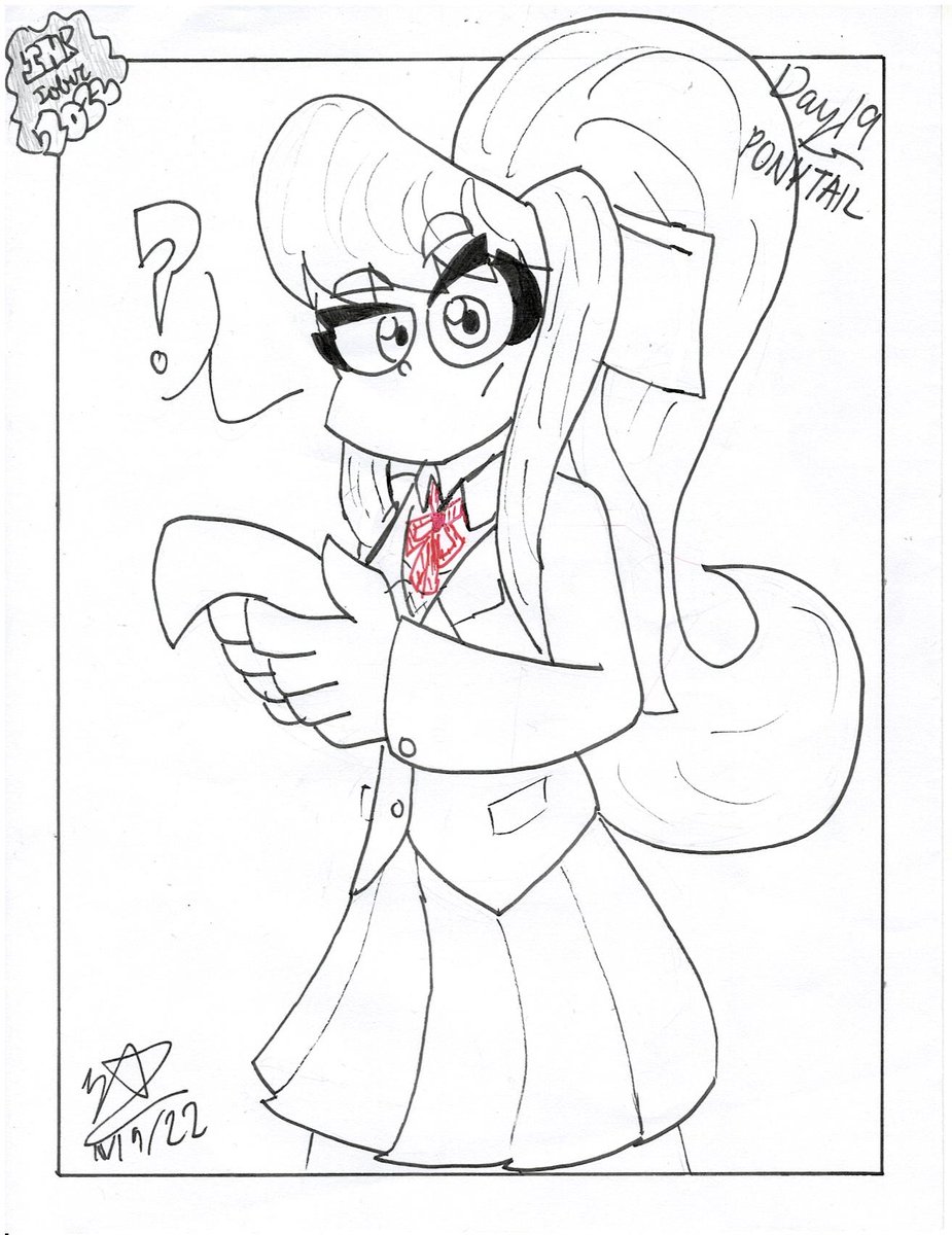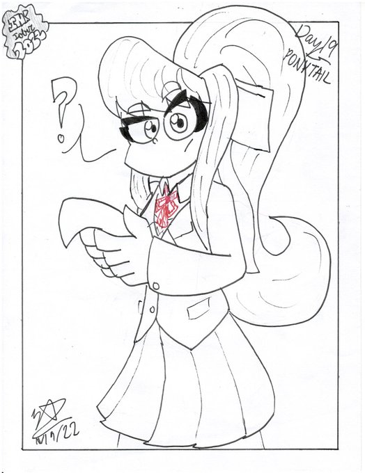 Inktober 2022 Day 19: Ponytail Nothin Special. Just your Average Girl checkin' up Code. :> #inktober #inktober2022 #inktober2022day19 #DDLC