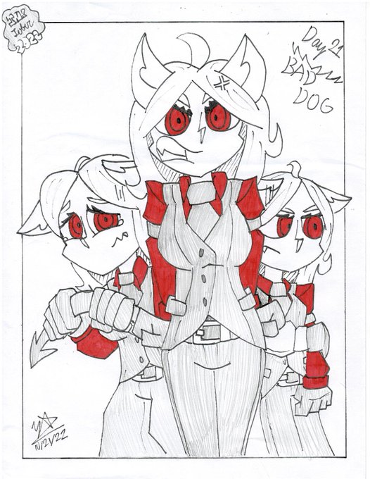 Inktober 2022 Day 21: Bad Dog Oh boy they don't like that ._.""" Helltaker by @vanripperart #inktober #inktober2022 #inktober2022day21 #helltaker #cerberus