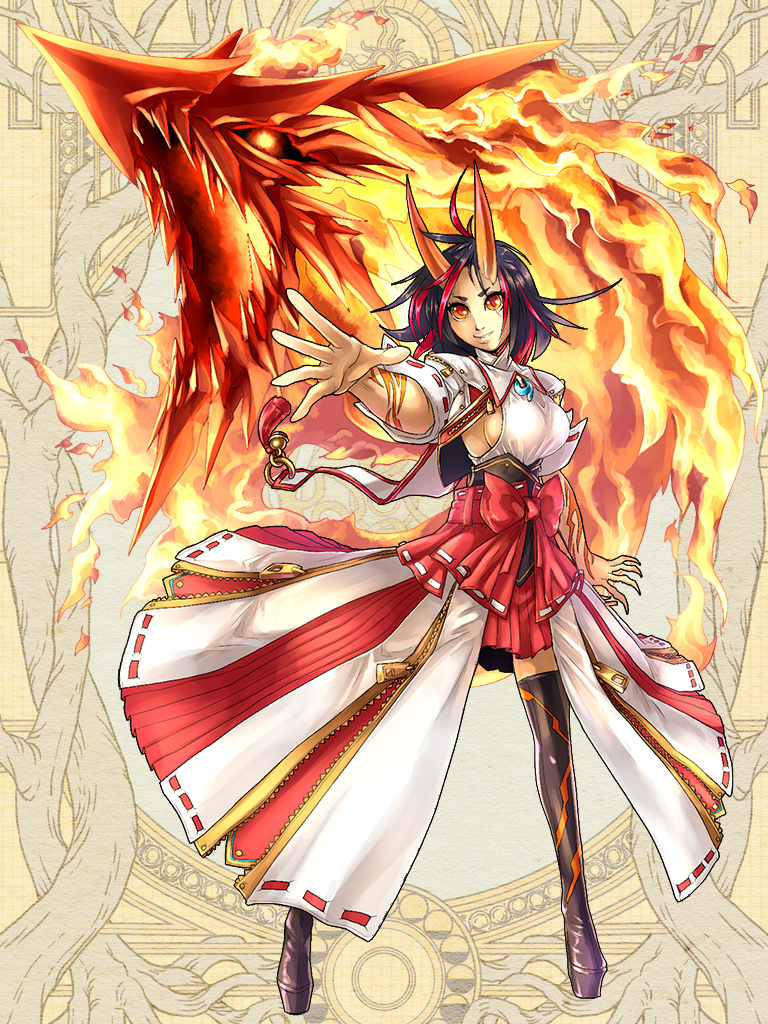 今回ご購入されたアトリエカードです、ありがとうございます 鬼っ子戦巫女イメージで描きました #第六猟兵 (C)key-chang/トミーウォーカー