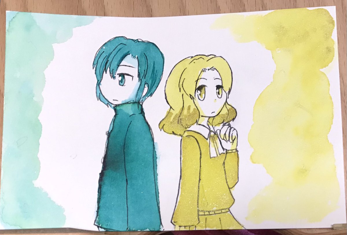 #万年筆インク版ワンドロ 色:鮮やかな黄色系、または近い色 お題:「カトラリー」 ってことでミツバチ娘 このワンドロって一色縛りとかじゃなかったよな…!? Ink 上野文具 レモン牛乳イエロー プラチナ万年筆 ブランセピア