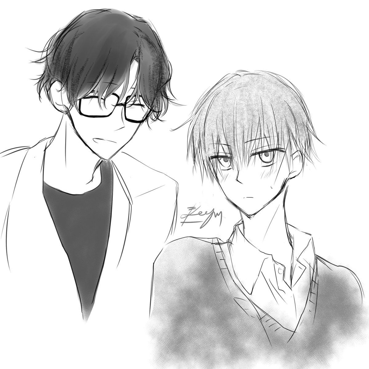 #今年も残りわずかなのでお気に入りの4枚を貼る 選びきれず第2弾🙋♀️ ①初めてCP要素で描いたkghr ②初めてしっかり描いたさみゃ ③ひまわり畑に気が狂って秒で描いた🌻 ④世界一綺麗にhrnさん描きてぇと思って描いた(タイムラプス) twitter.com/i/web/status/1…