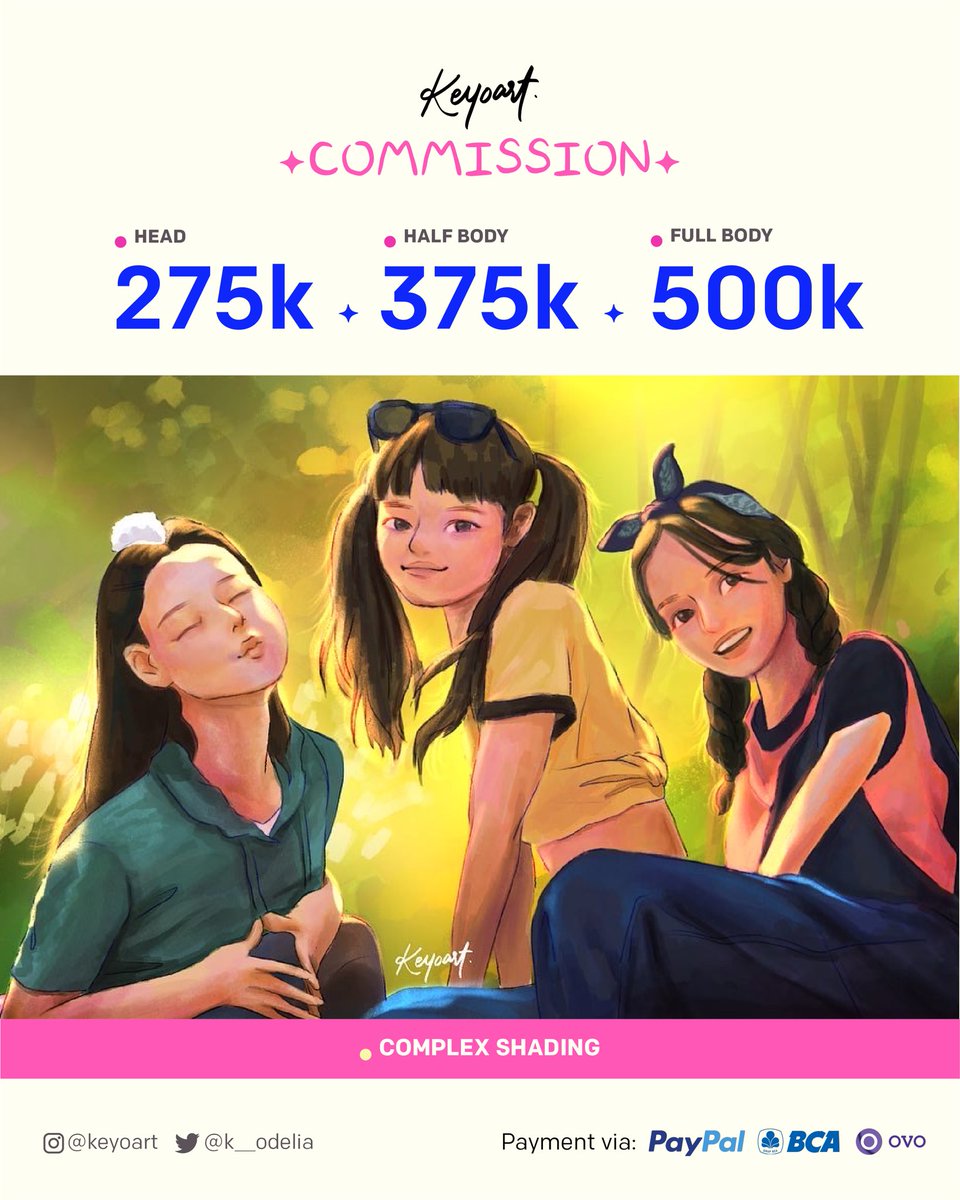 OPEN COMMISSION✨digital illustration✨ 💕LIKE & RT ARE VERY APPRECIATED💕 Available in 3 styles❤️🔥 for local (IDR) and international (USD) 📌Fill the form on my bio to order right away #opencommission #digitalillustration #commission #ArtistonTwitter #artidn (a thread⬇️)