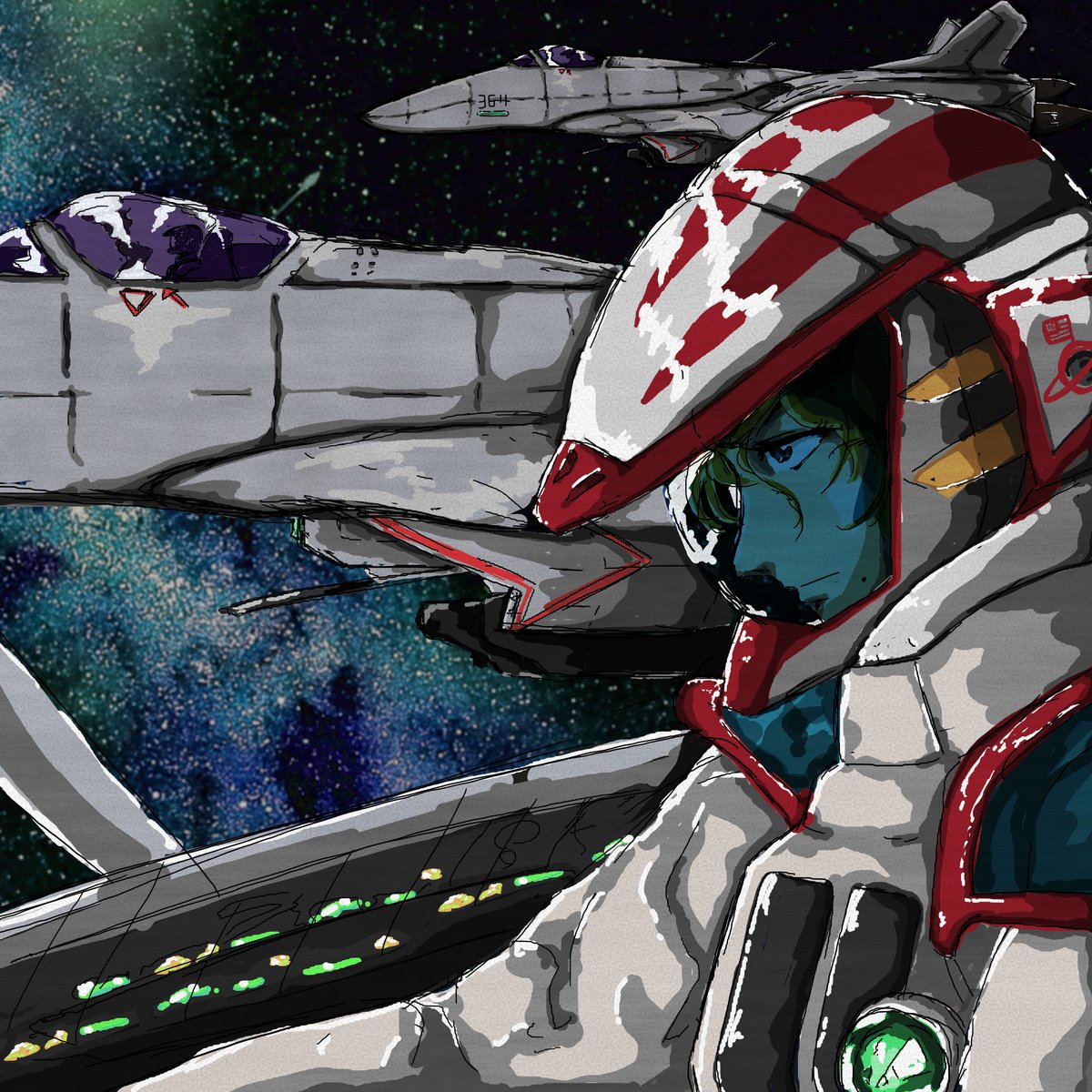 3DCGの制作で精神がカミーユになりかけたので お絵描きに逃げました(超雑ですが…) 絵のテーマは80年代っぽいSFアニメです。 うん、マクロスですね... #お絵描き #落書き #イラスト #お絵描き初心者