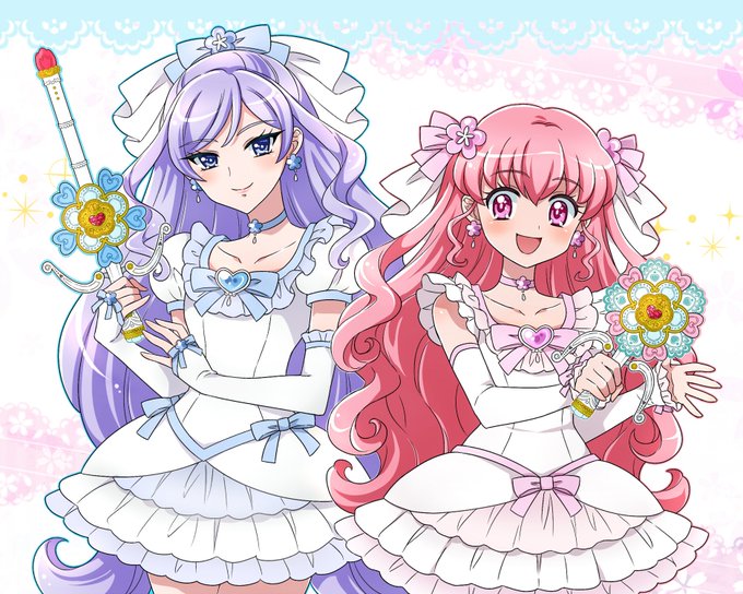 そういえば6月なので去年描いたオリキュア花嫁組を再掲しとこ ブライド(青)とマリッジ(ピンク)