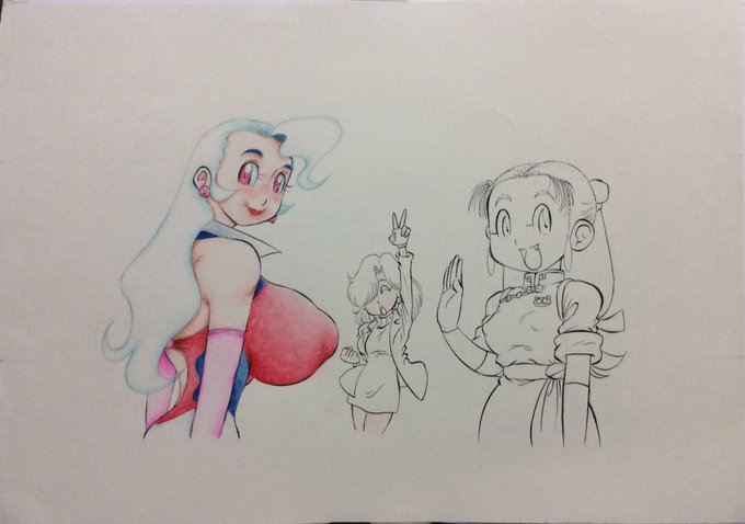 なんか出てきた。平成初期の頃からひっそり描き続けているオリジナルキャラクターたち。下書きのコピーから2017年にヘッダー用に描いていたもののようです。名前はなかったのでこのときに思いつきでつけたみたいですね。#オリジナルイラスト