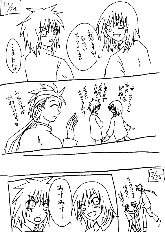 双子とパパとメリークリスマス 双子(おっとりのリヴィエル(リヴィ)、ツンツンのギディエル(ギーディ))と父様(アイゼンデーヌ(デーヌ))の3人で迎える初めてのクリスマス 因みにショート漫画な本編はこちらから↓(moonlightmuseum.web.fc2.com/00dd.html) #漫画が読めるハッシュタグ #月煌DayDream