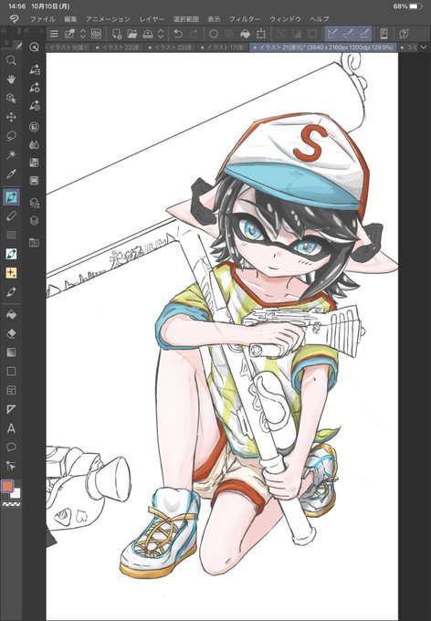 11 84 ペルソナの絵も描きたいけど スプラ絵が終わらない… #プロテインザスバル 22/10/10 23:32