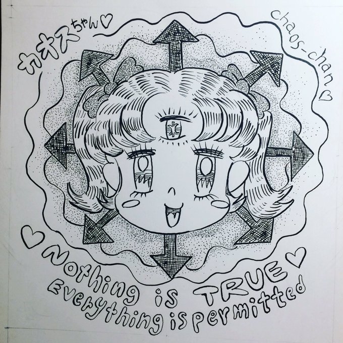 Nothing is true. Everything is permitted. The original mystical anthropomorphic character Khaos-chan. 元祖神秘擬人化キャラカオスちゃん。 #discordian #chaosstar #illustration #manga #moeanthropomorphism #漫画 #イラスト #カオスちゃん #擬人化 #擬人化イラスト #pendrawing #ペン画