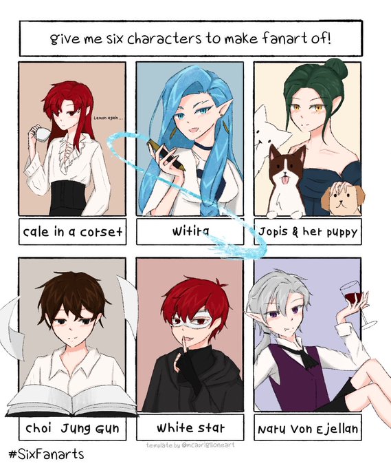 26 87 มาแล้วค่ะ//ตุย☠️ อฟชเค้าไม่ได้พูดถึงหน้าตาโจปิสมาก ละElisnehผมเขียว เลยเดาว่าผมเขียวเหมือนกัน ส่วนสีตานี่เดาล้วนๆ555555 #SixFanartsChallenge #sixfanarts #백망되 #lcf #อันธพาลแห่งตระกูลเคานต์ 22/06/13 08:27