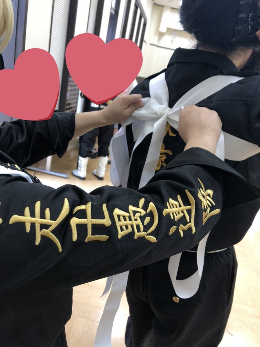千冬と三ツ谷とタケミチときた!! 念願の特攻服にタスキ✌ 千冬が結んでくれました❄ #アコスタ鶴舞