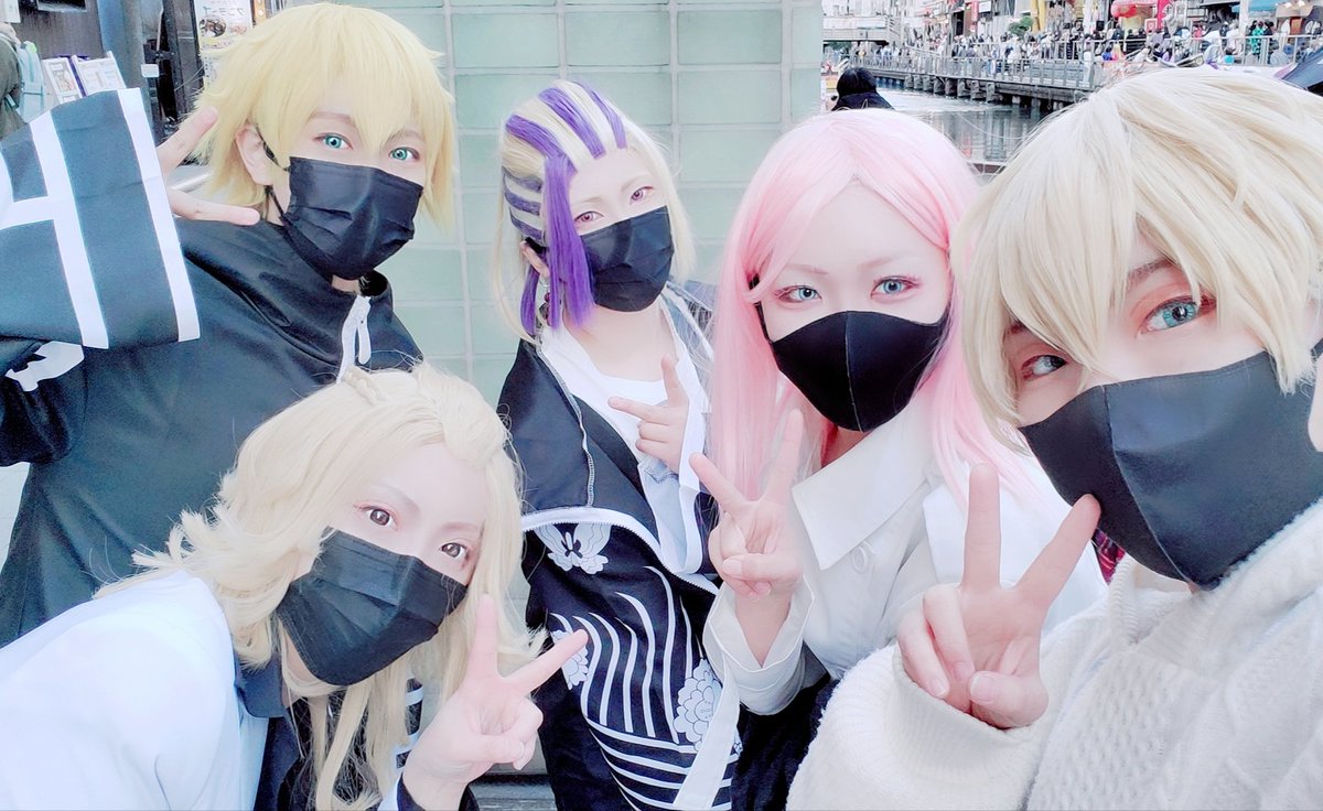 急遽千冬とマイキーとタケミっちと一緒に制服で参加してました✨ 新ジャンル初出しで場地さん!楽しかったです\(*ˊᗜˋ*)/ マイキーからマスク貰いました💕 #アコスタ鶴舞