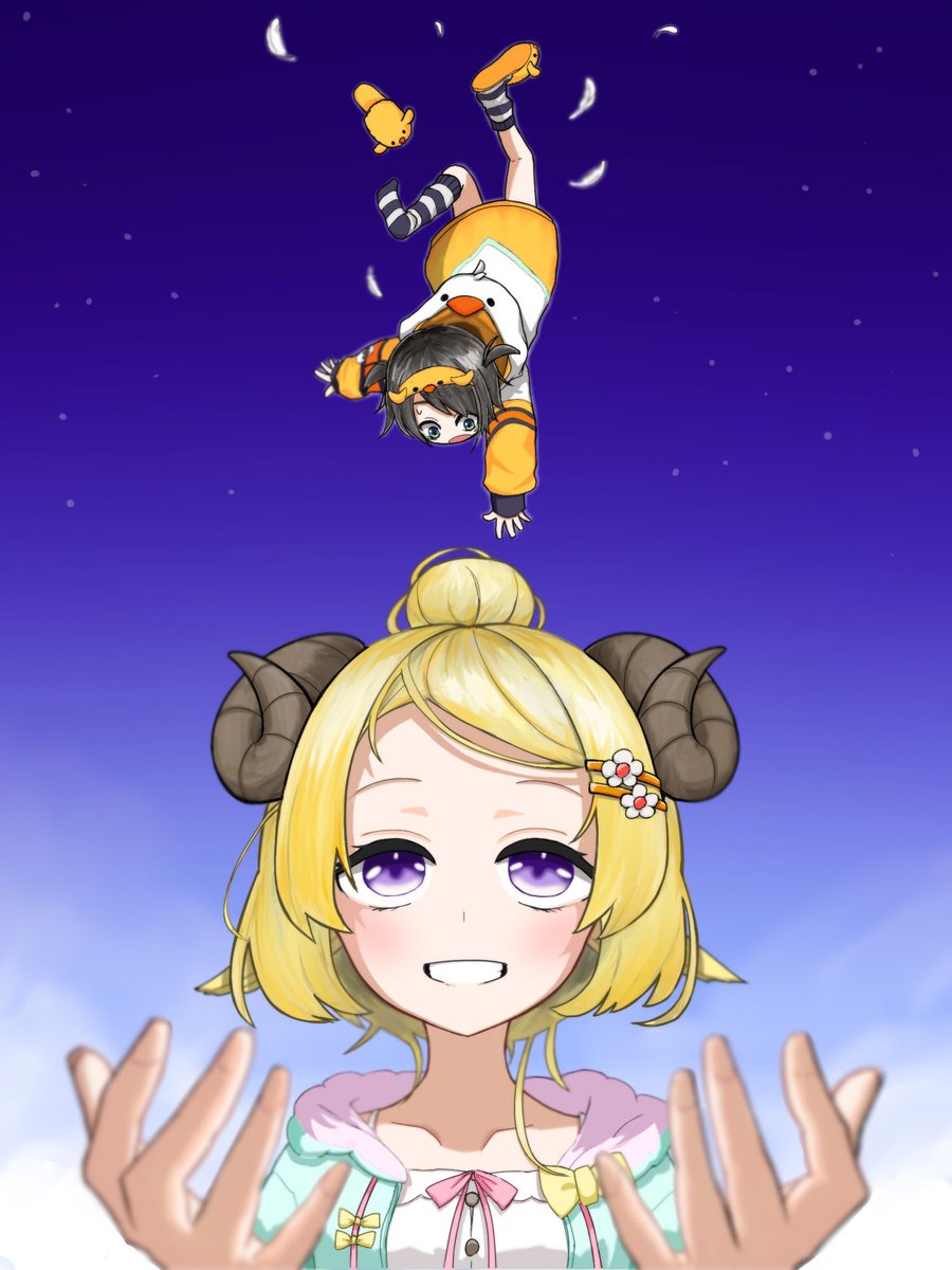 31 168 おさげ と ぼたん と わため #獅白ぼたん #角巻わため #ししらーと #つのまきあーと #獅白ぼたん新衣装2022 22/09/07 07:02