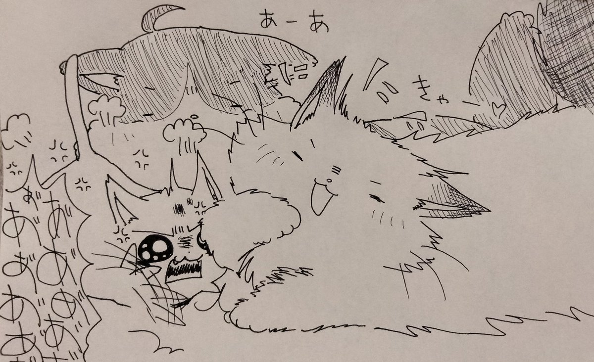 ちびねこの反撃 #ねこ #イラスト #かわいい #仲良し #いつもいっしょ #日常 #癒し系 #ほのぼの