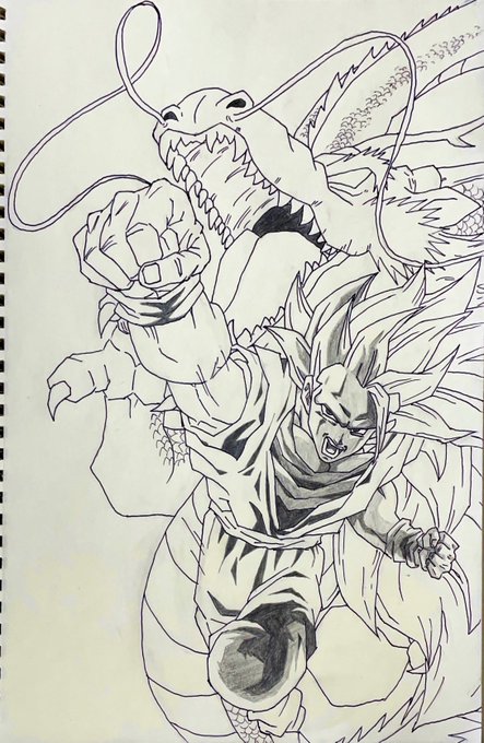 めっちゃ早くできてしまった もう1枚描こっと 結構頑張ったから伸びて欲しいな|´-`)チラ #サイヤの日 #ドラゴンボール #孫悟空 #模写 #絵師さんと繋がりたい