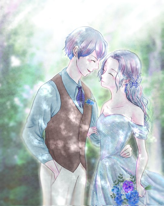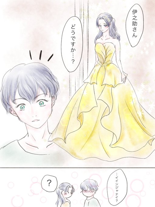 #伊アオ版深夜のお絵描き60分一本勝負 本日も開催ありがとうございます。 お題:ヒロイン、ときめき 時間:70分 💒式の👗試着。恥ずかしがりつつもお話のヒロインになった気分でちょっとときめく🦋ちゃんと萌えが止まらない🐗
