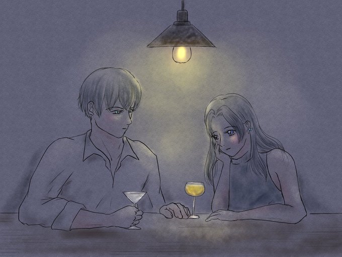 #伊アオ版深夜のお絵描き60分一本勝負 本日も開催ありがとうございます。 お題:電球、(再び、心変わり、はほんのり入っています) 時間:70分 「bar」 ALTに2人のカクテルの意味を書いています。 現パロ。一目惚れな🐗。
