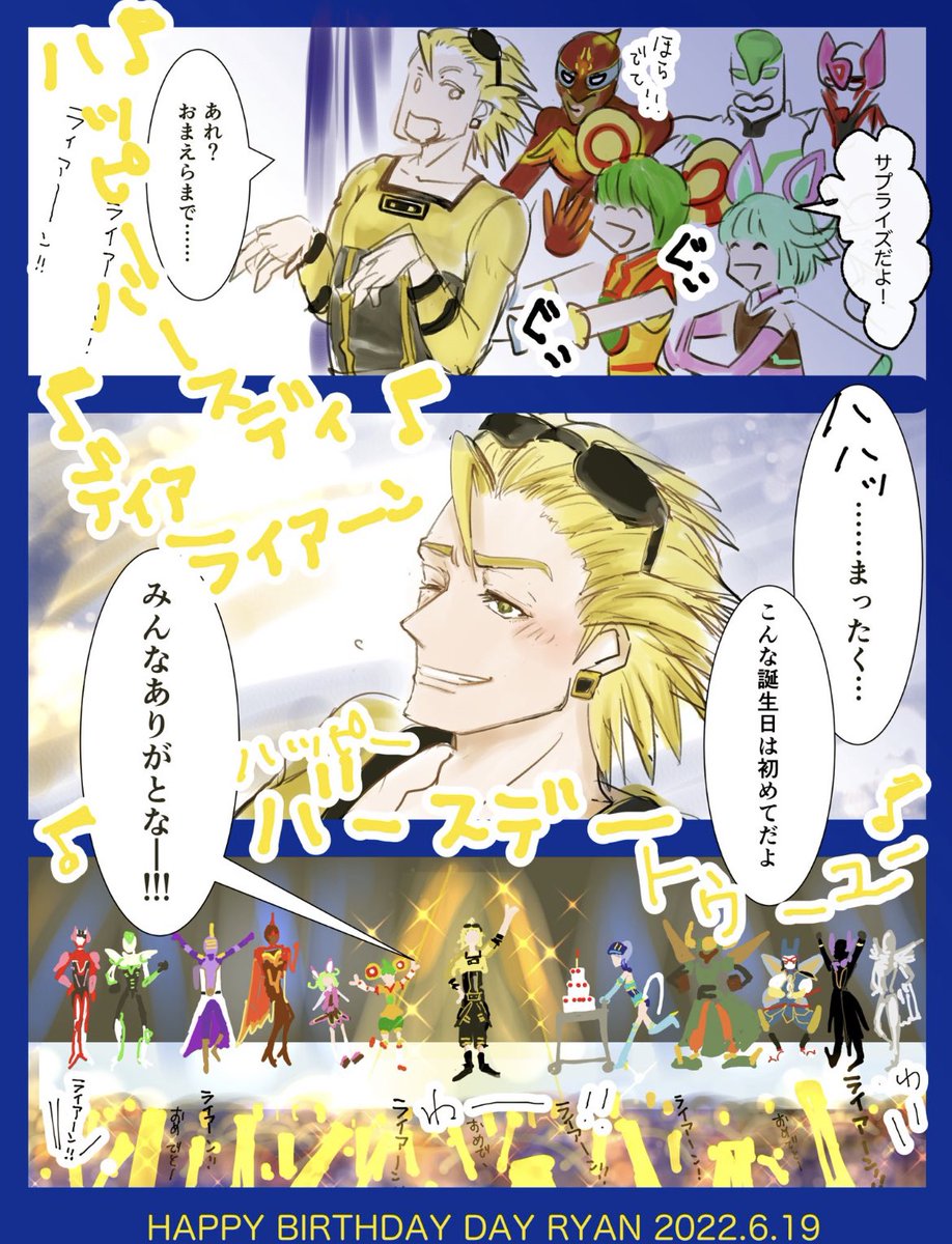 間に合わなかったけどせっかくなのでアップします💦みんなにお祝いされて照れちゃうライアンもいいよね☺️ライアンお誕生日おめでとうー!!サプライズケーキはブルロちゃんが運んでくるよ☺️ #ゴールデンライアン生誕祭2022 #ライアン・ゴールドスミス生誕祭2022