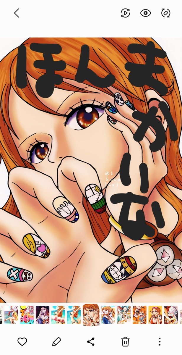 単行本は白黒やから誤魔化せてるけどお察しの通りカラー判明前のあれです(笑) 私の描いたナミさんを見て尾田っちが「ナミ」って言ってくれるのがまた嬉しいのです。めちゃくちゃ興奮するのです。 選んで頂きありがとうございました😊 #ONEPIECE #ONEPIECE106 #ワンピ新刊 #ウソップギャラリー海賊団