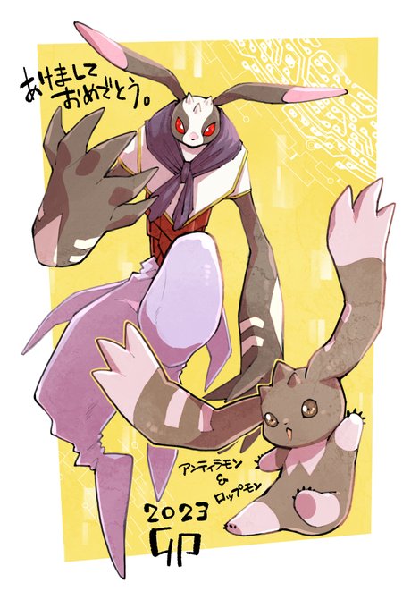 12 26 あけましておめでとうございます!今年の初描きはアンティラモン&ロップモンで兎年~!!! 23/01/01 19:20