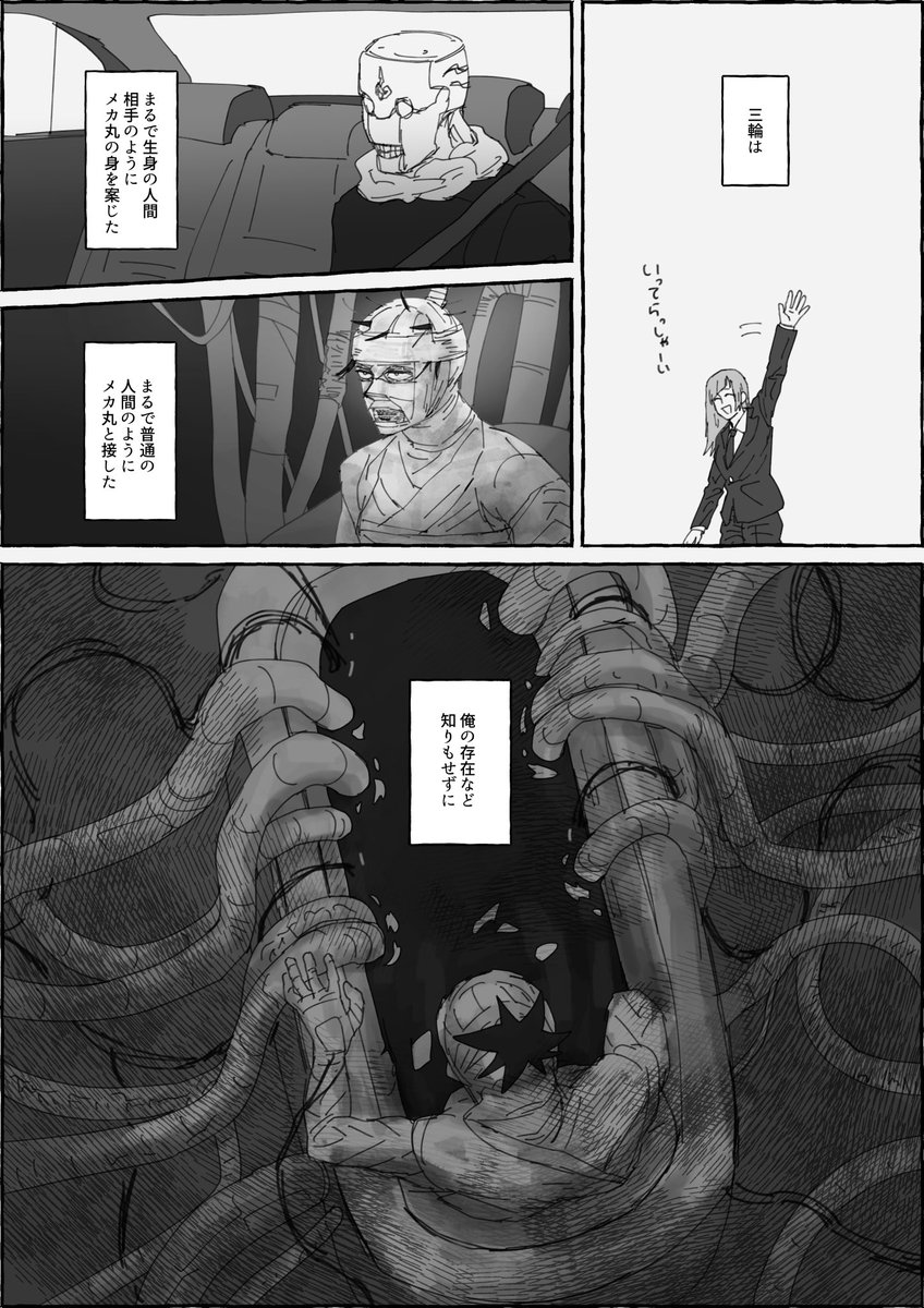 4 18 3月末に思い立って4月4日までの日数分の三輪ちゃんを描こう〜と始めたけど、普通に毎日描けなくて間に合わねーわネタが思い付かねーわで放置してたやつ。10月になる前に、やーっと描きました。 三輪ちゃんとメカ丸。 むたこうきちにポエミ〜な独白させるのがクセなの。ごめんなさい。 22/09/29 00:33