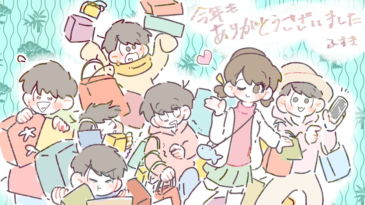 14 89 描き納め!! トト子ちゃんのお買い物に付き合う六つ子達 来年も何卒よろしくお願い致します🙌 22/12/31 22:38