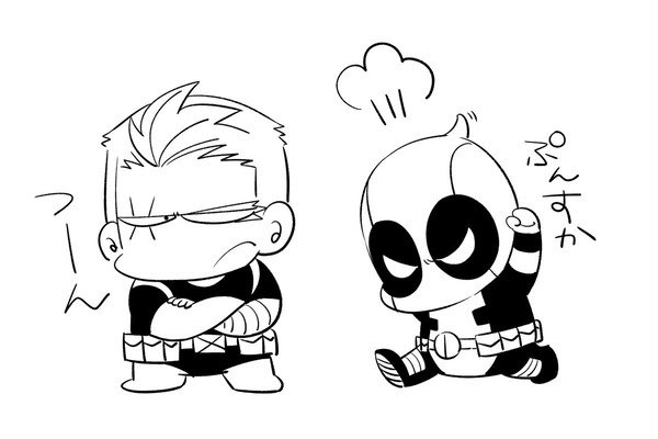 え、昔描いたデップーとケーブルかわいいな我ながら