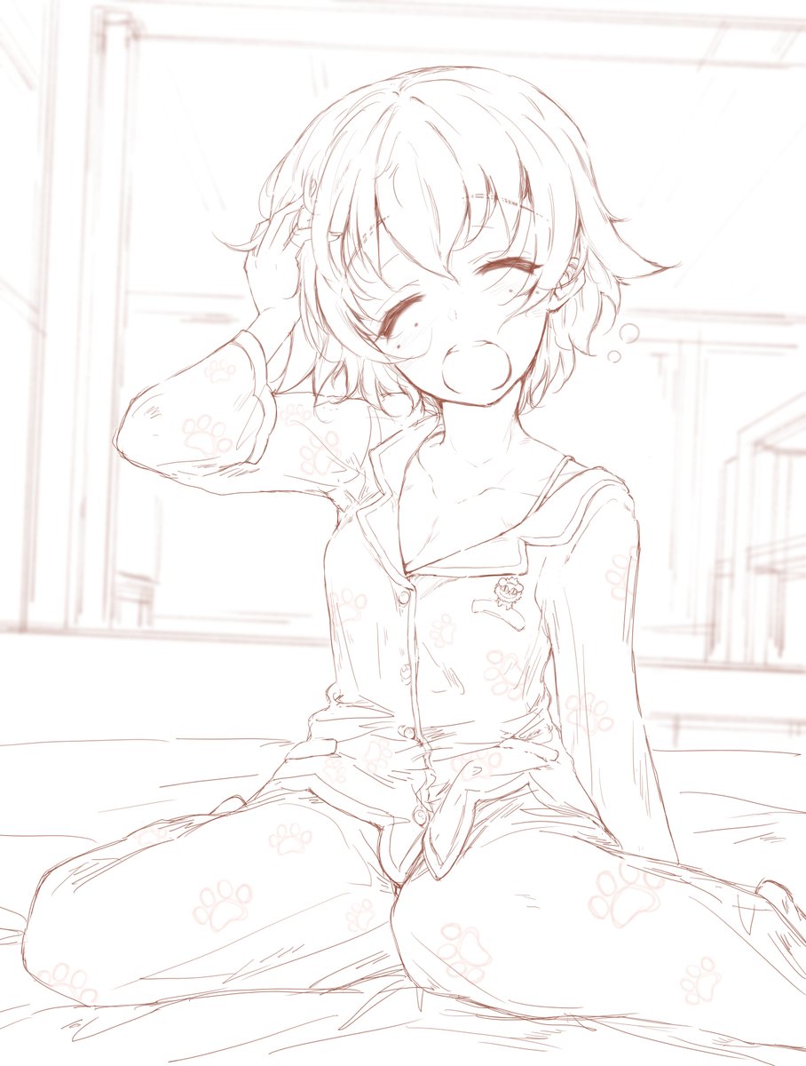 パジャマ&ツチヤの続き。色塗り練習…投了です。 #ツチヤ
