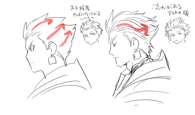 こんばんは ギルガメッシュ髪型研究会です Fake版は他と違う毛流れでとてもよいですね。