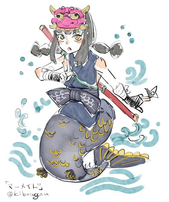#人外版深夜の真剣お絵描き60分一本勝負 マーメイド