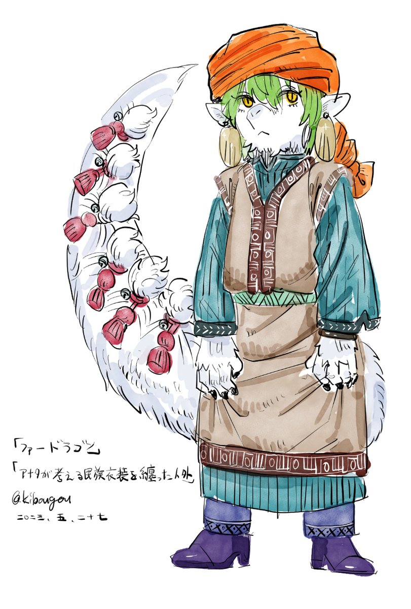 2 12 #人外版深夜の真剣お絵描き60分一本勝負 「ファードラゴン」 「アナタが考える民族衣装を纏った人外」 23/05/27 00:05