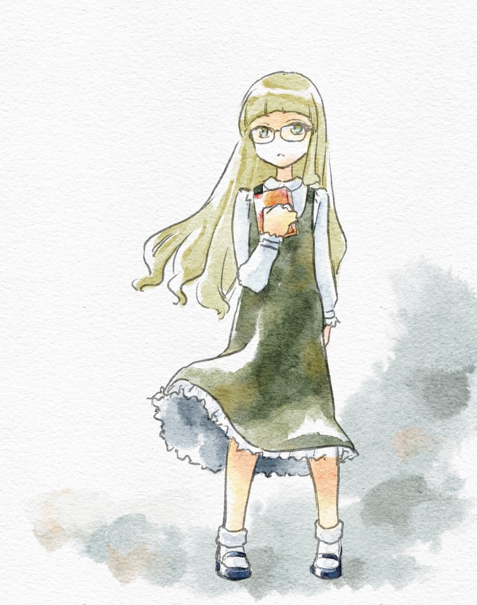 透明くれよんでらくがき。発色が良くて混色も面白いので使いこなせれば独特な絵が描けそう(ただしゴリゴリ減っていく) 肌は適当な色がないのでポンキーペンシルで塗ったのだけど、この紙との相性があまり良くない気がするな