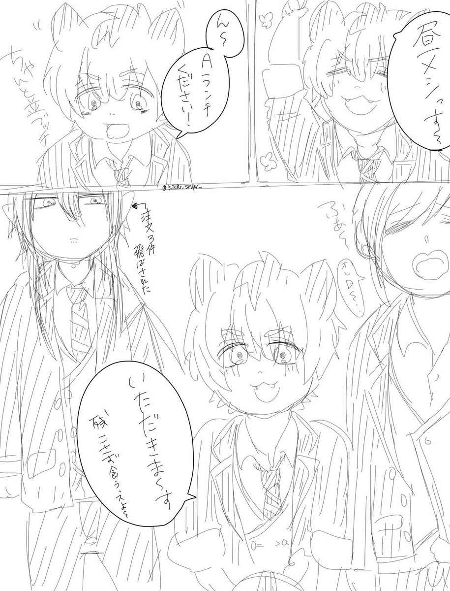 #twstファンアート #ツイステファンアート 実際昨日あったこと、🐉さまも有り得そうだなと思ったけど食堂使ってるのか???という疑問も出てきた…… メニューを考えるのを放棄した 🍩くんと🦈くんは特に意味ない人選