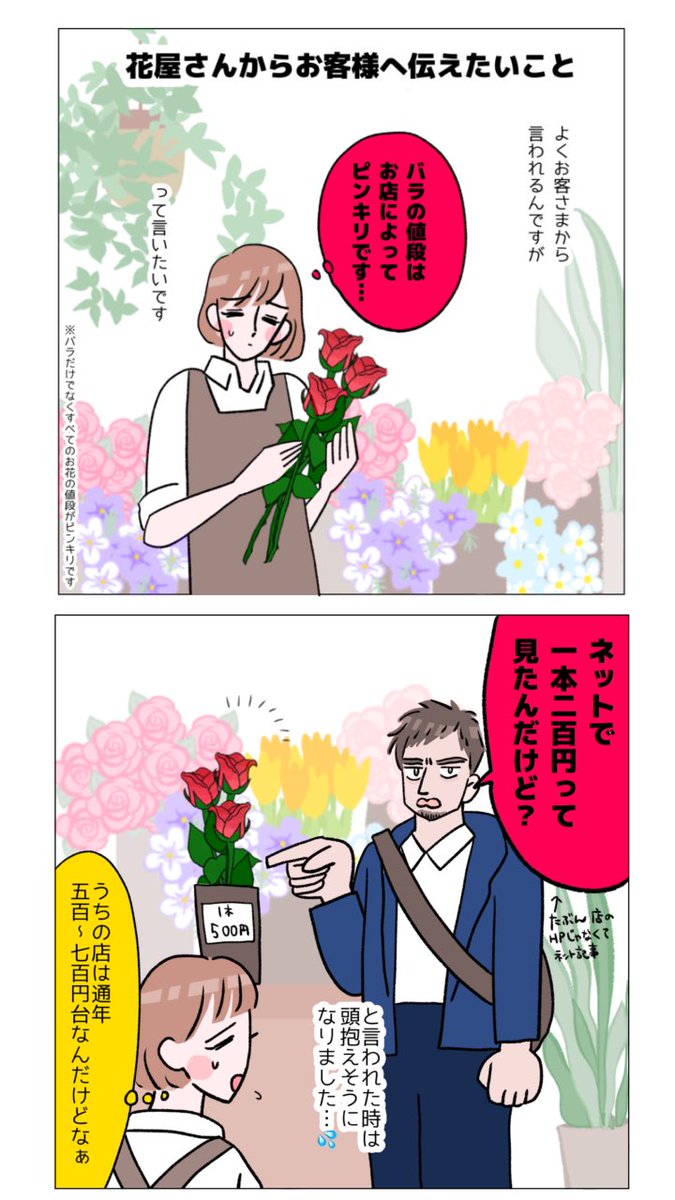 8 51 【花屋さんからお客さまにお願い!】 お花の値段はお店によってぴんきりなので気をつけてね〜!🌹 #漫画が読めるハッシュタグ #エッセイ漫画 #絵日記 #ライブドアブログ 23/03/17 18:45