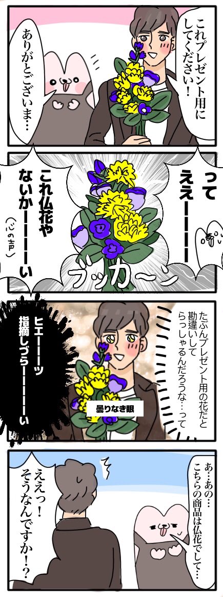 1 6 【花屋さんからお客さまにお願い】 仏花をプレゼント用の花束と勘違いされる方います!気をつけて!💐 #漫画が読めるハッシュタグ #エッセイ漫画 #絵日記 23/03/30 21:57
