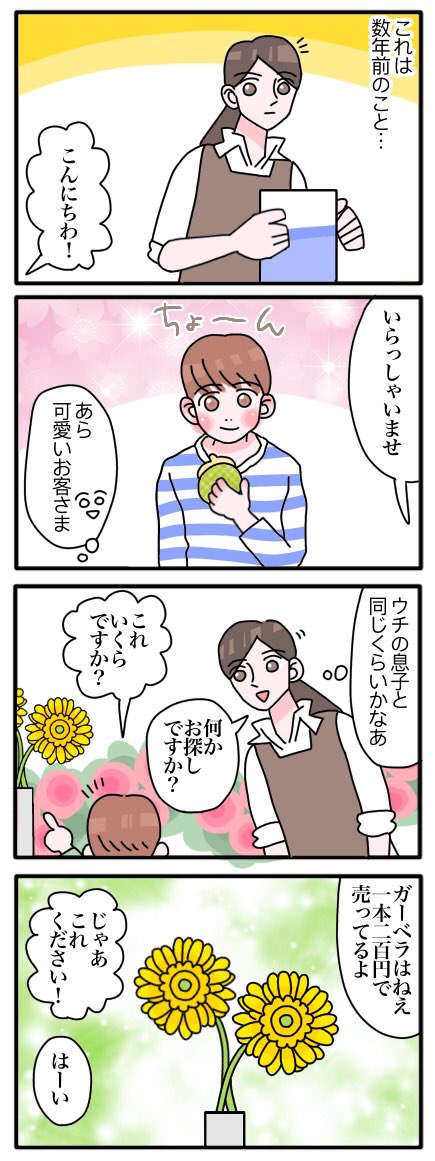【花屋体験談】 1人でお花を買いに来た男の子にキュンとした話🌼 #漫画が読めるハッシュタグ #エッセイ漫画 #体験談