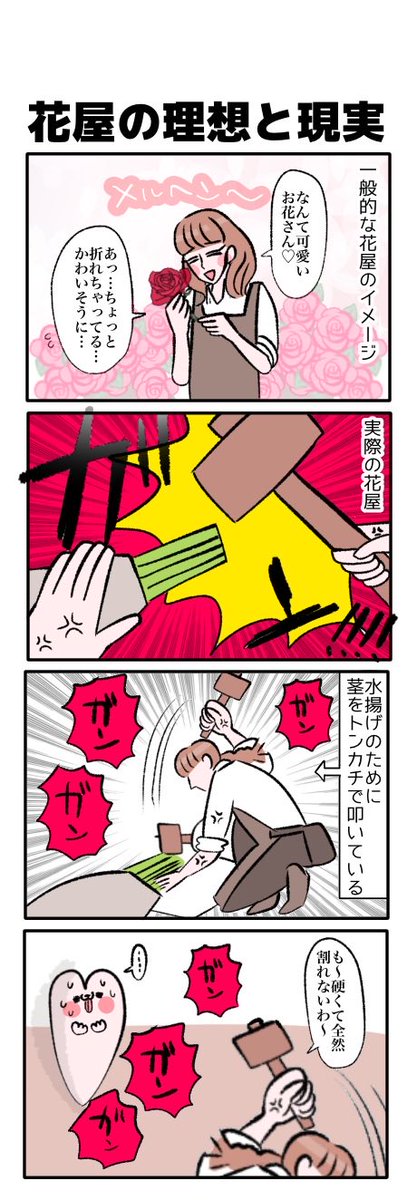 【花屋あるある】 花屋さんにメルヘンな瞬間など無い #漫画が読めるハッシュタグ #エッセイ漫画 #絵日記