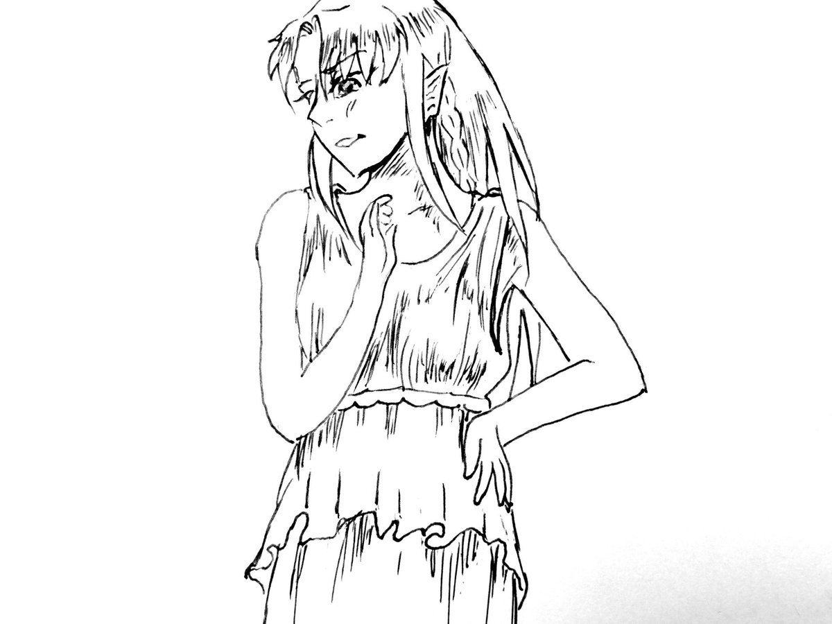 #Inktober2019 prompt: tasty. She's either looking at a frog or her husband. I just took the opportunity to mess with the traditional-looking brushes in CSP.