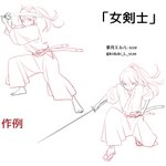 お題箱「女剣士」 トレス&模写 ・アレンジOK ・商用利用OK ・報告はなくてもかまいません NG:素体の自作発言・二次配布・転載 pixiv:pixiv.net/member.php?id=… #トレス素材