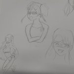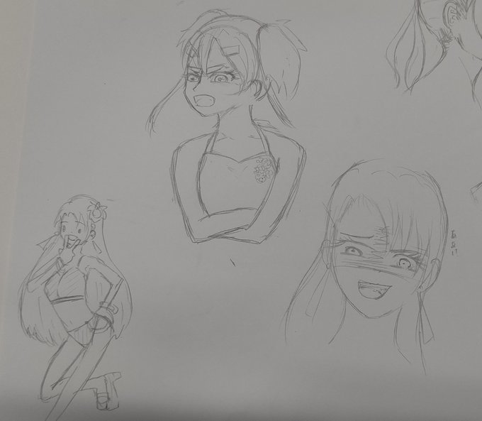 最近シャンフロ描いてないから夏の妄想置いときます。 鰹は「中身男ですが?!」ってなって欲しい。男故に最初はノリノリの水着選ぶが、可愛さ余って普通のから露出少なめなんならパーカー着る。 鉛筆はノリノリ!チョーノリノリ。 でも顔の圧がある。特技は活かすのでその顔は撮れない #シャンフロFA