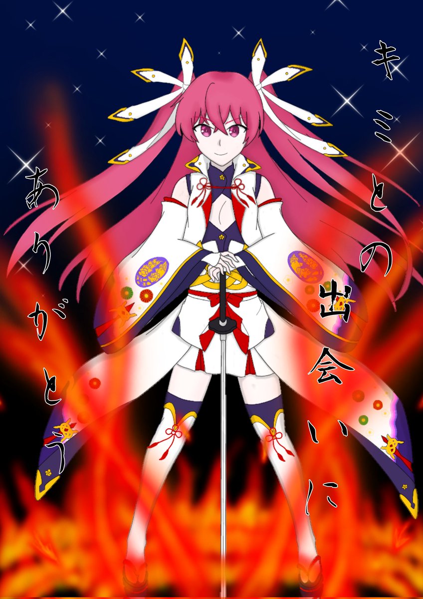 #天華百剣 #天華百剣ありがとう 3枚目は鬼神丸の長ランです。 自分でこんな鬼神丸を描きたいと思い、いろんな画像などを参考に服のデザインを考えて描きました。 後ろの刀のエフェクトは新選組の巫剣をそれぞれイメージして描きました。 色々こだわって描いたので新しい年に載せました。