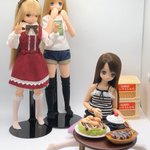 #今夜のドール撮影120分一本勝負 お題【そらす】 サアラ 「ひめのんが暴食してる!」 リアン 「どうしたの!?」 ひめの 「うちもボケたいんやけど、それじゃ誰がツッコミやるんって考えてたの」 2人 「うっ、、、」 (お好み焼きにご飯はフリかしら?!) #アゾカツ #アゾン #えっくすきゅーと
