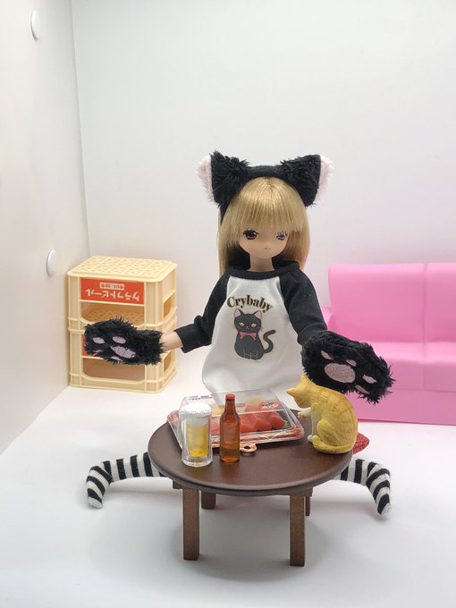 4 44 #今夜のドール撮影120分一本勝負 お題【やすむ】過去作 リアン 「ストレス解消はお肉とおビールね」 #アゾカツ #アゾン #えっくすきゅーと 23/01/17 22:56