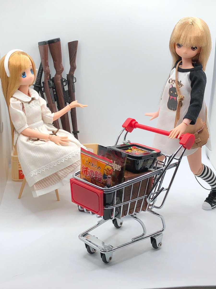 #今夜のドール撮影120分一本勝負 お題「たび」(過去) リアン 「冒険の旅の前にアイテム調達ね」 サアラ 「お嬢さん武器はいかがかね?」 #アゾカツ #アゾン #えっくすきゅーと