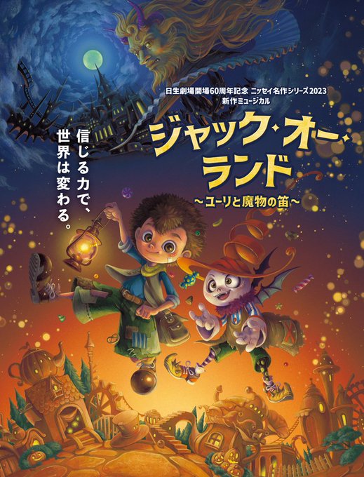 ニッセイ名作シリーズ 劇団四季新作ミュージカル 『ジャック・オー・ランド~ユーリと魔物の笛~』のメインビジュアルとキャラクターイラストを担当しました。 日生劇場にて東京近郊の小学校3・4年の児童を対象にした招待公演となります。 先5年間毎年6~7月に公演予定です🎃 shiki.jp/applause/jol/