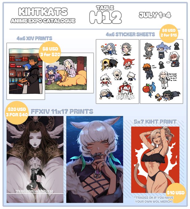 ANIME EXPO IS AROUND THE CORNER! Here's my catalogue for #AXArtistAlley2023 (FFXIV VERSION) ! see u soon 🫶 #AX2023