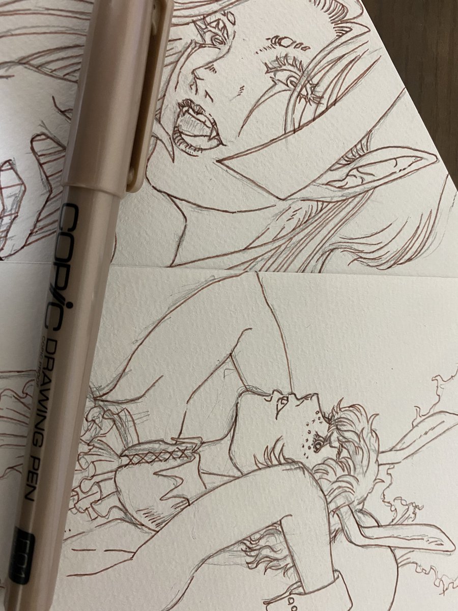【展示会進捗】 額装終わり!追加ドローイングもペン入れ終わったので明日サクサク塗ります😘 #水彩の魔術師展 #イラスト